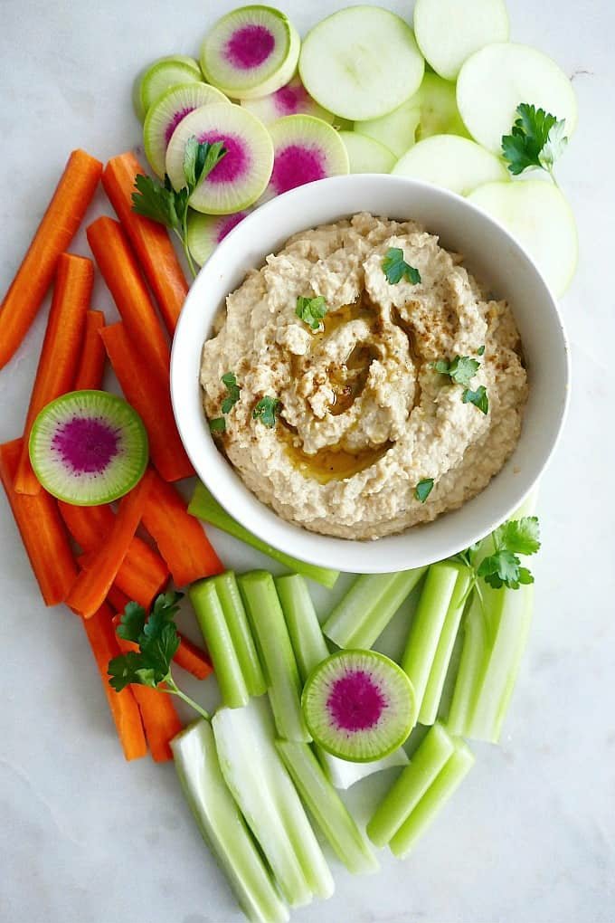 – Roasted Turnip Hummus: Turnips blended into hummus and served with apples or chopped vegetables.